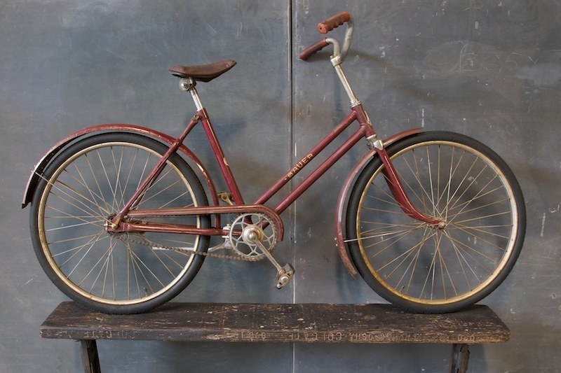 Vintage Bauer Cruiser. Ride the bygone days or hang your argyle vest over the handlebars in your retail establishment. This early example is in a rich Oxblood Burgundy. Equipped with a Coaster Brake and Rare Sachs grease-injected hubs. Ready to ride, and running smooth. Made in Germany, c.1932 by BAUER WERKE KL-AUMEIM MAIN.