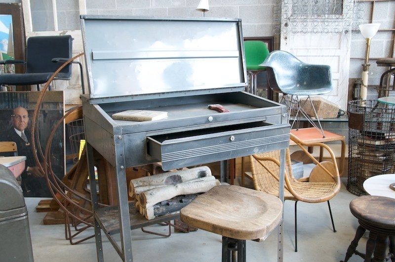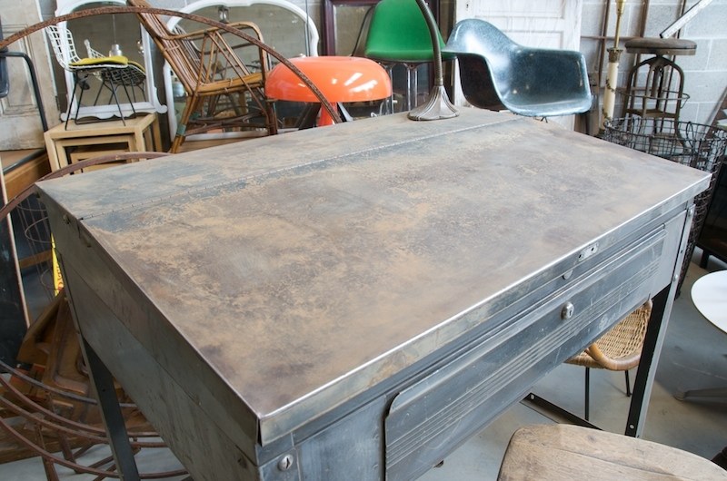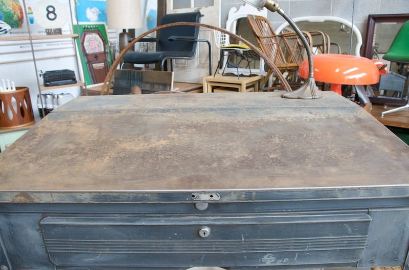 Mid 20th Century Vintage Steel Industrial Table or Work Desk. Flip top for storage.