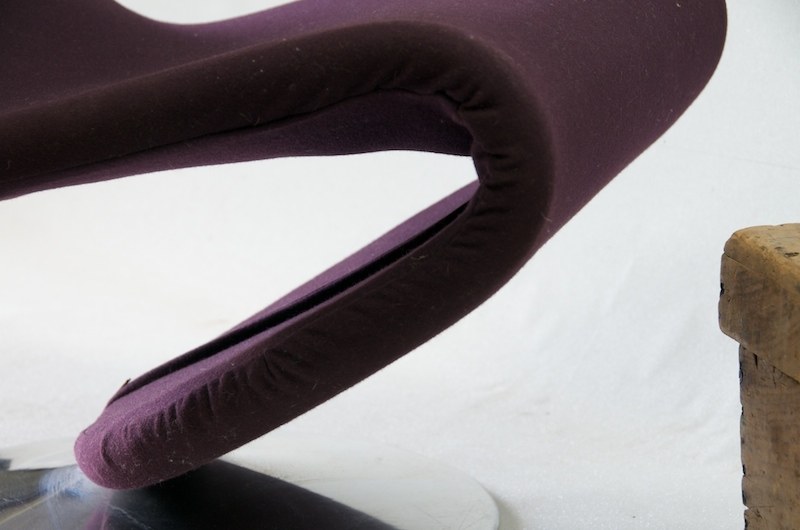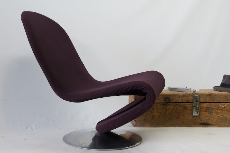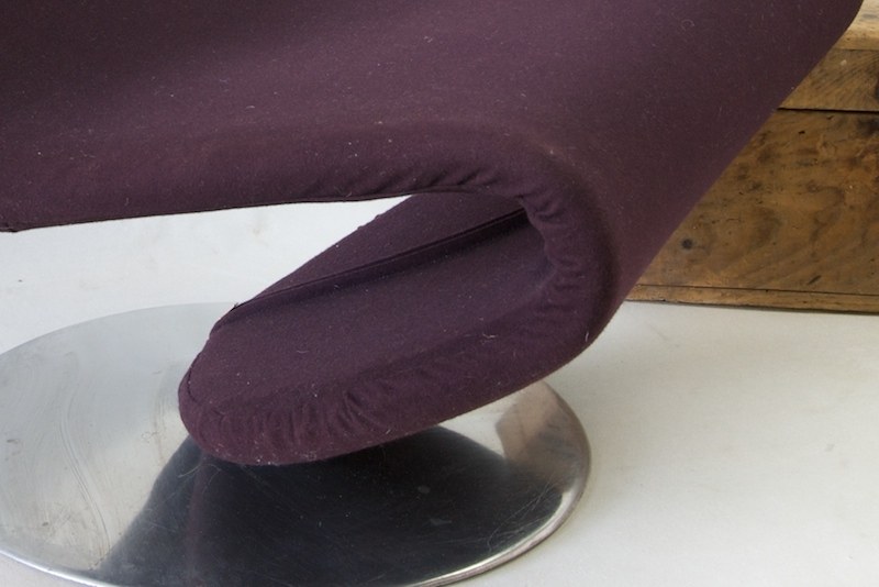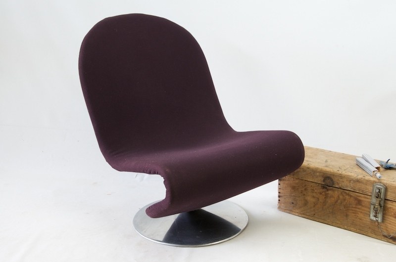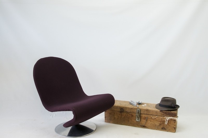 Verner Panton 1-2-3 Armchair, Denmark, Fritz Hansen Label, circa 1960. 1-2-3 chair by Verner Panton, swivel round base in aluminum, beautiful purple grape upholstery. SOLD