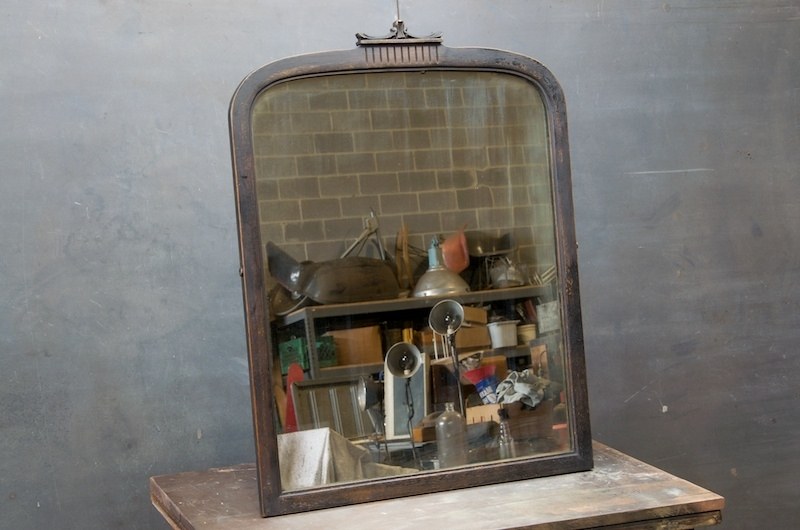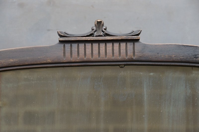 England, c.1930s. Regent Balboa Portrait Wall Mirror. Heavy Hardwood Frame. Old Mirror Silvering Technique. Time Worn Patina.