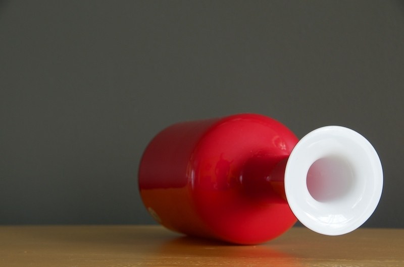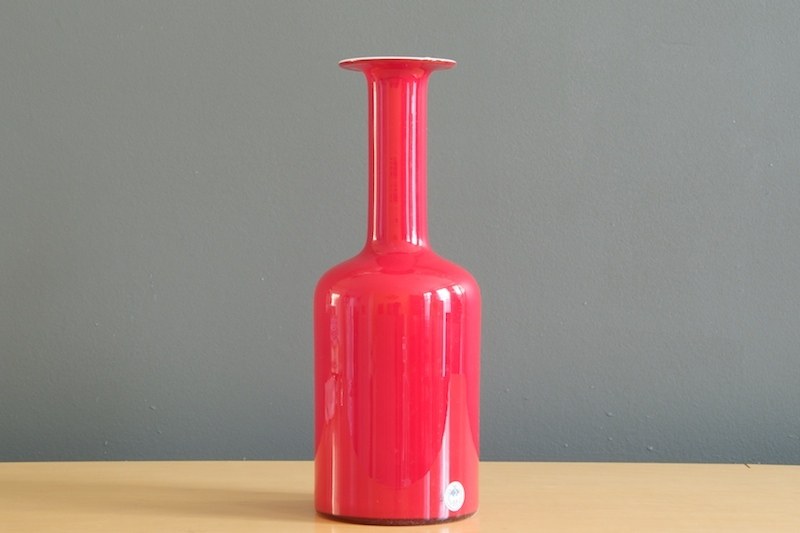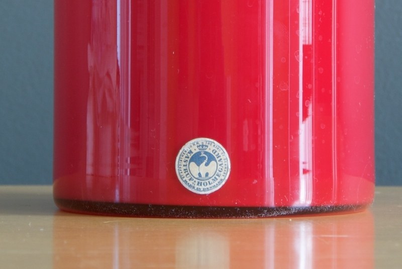Vintage DANISH Modern HOLMEGAARD GUL vase from the 1960's. Deep Red Cased Glass. Excellent condition. 10" High.