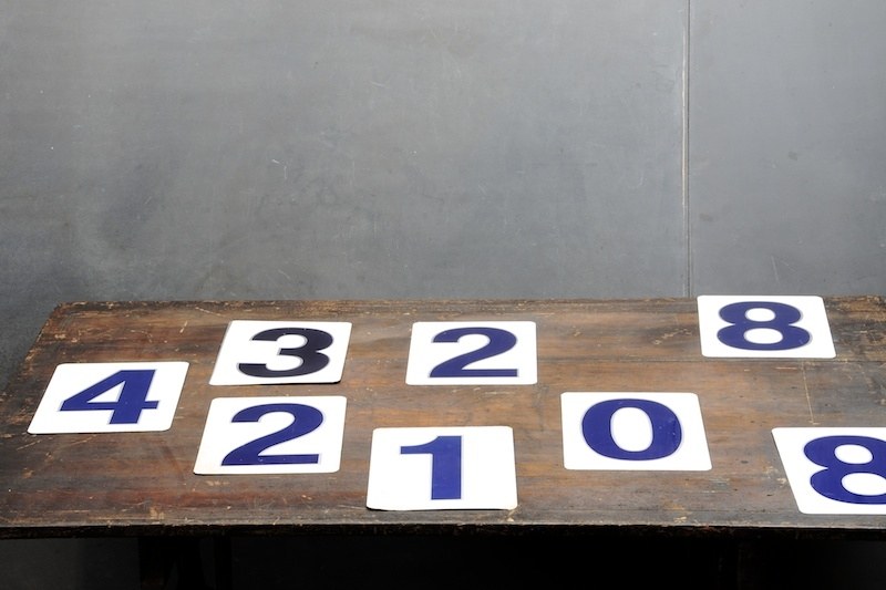 USA, 1950s Vintage Gas Station Numbers. Heavy Flat Steel. Brilliant Metallic Blue and Silver.