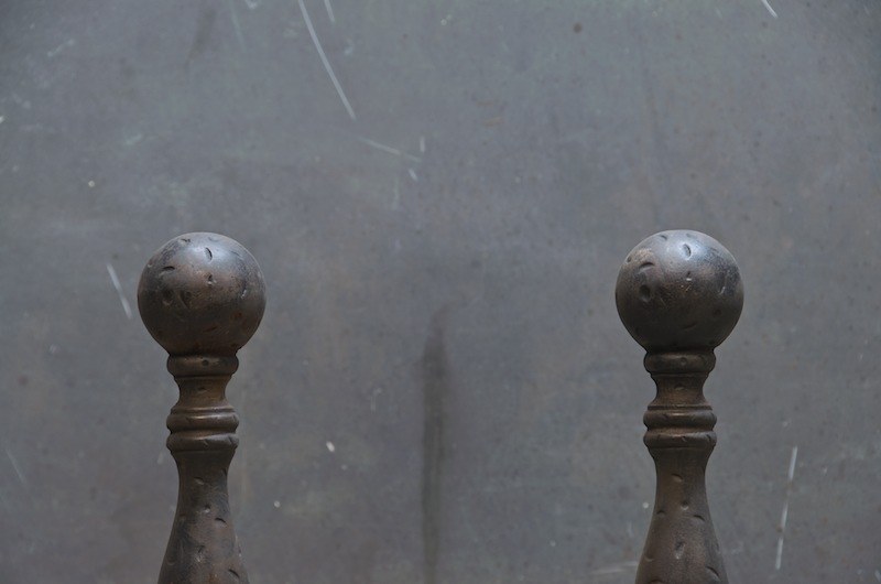 France, 1930s, Vintage Cast Iron Fireplace Andirons, Bezant Motif.