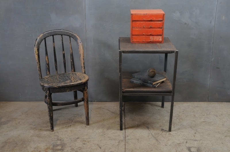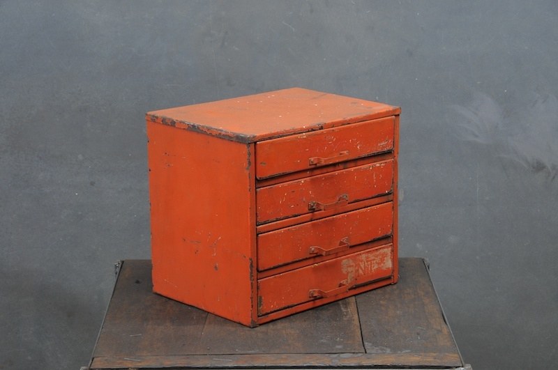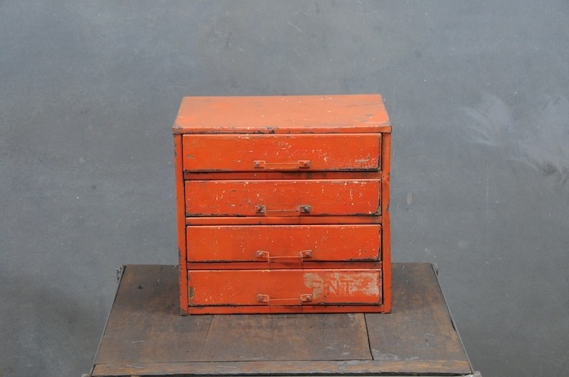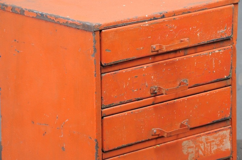 USA, 1940s, Vintage Industrial Steel Orange Sorting Box. Well Worn Patina.