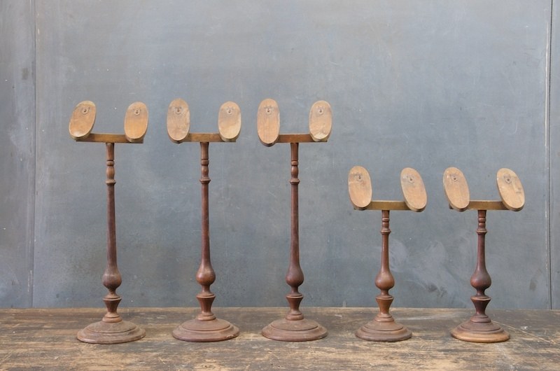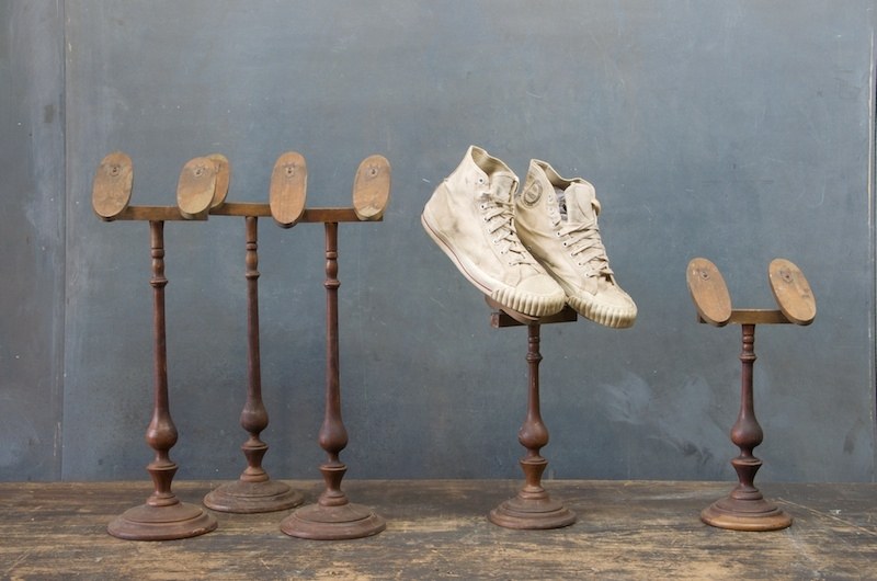 USA, c.1890s. Old General Store Boutique Turned Wooden Based Shoe Display Stands. Rare Item in Great Condition. Set of Five.