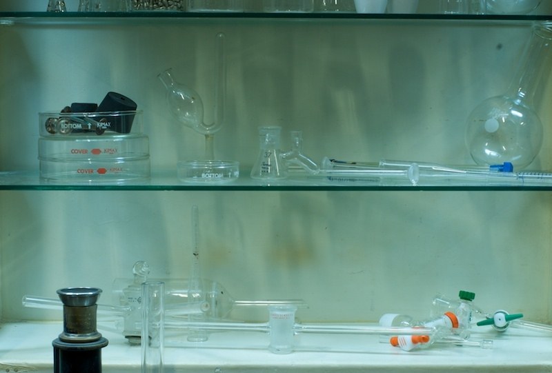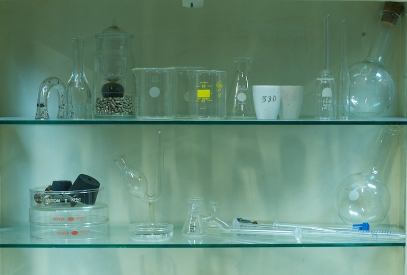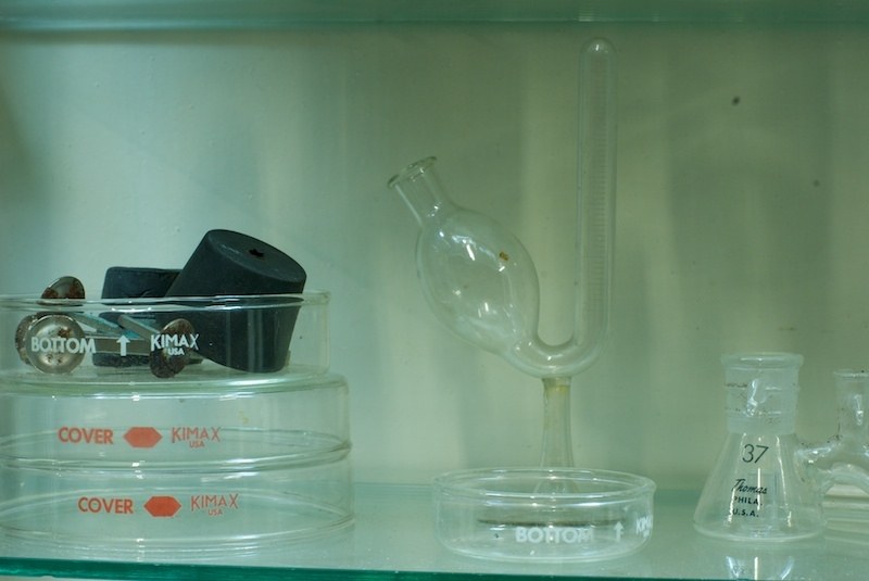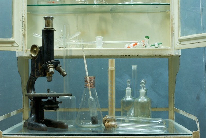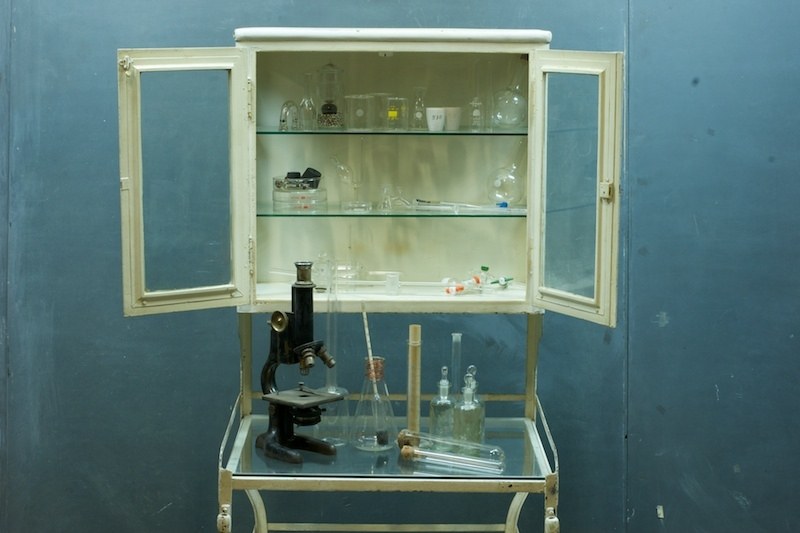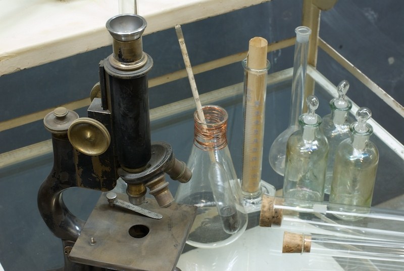 A Very Large Vintage Lot of Old Science Medical Glass Apothecary, Beakers, Large Test Tubes, Thermometers, Microscope, Etc.