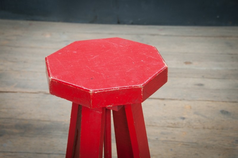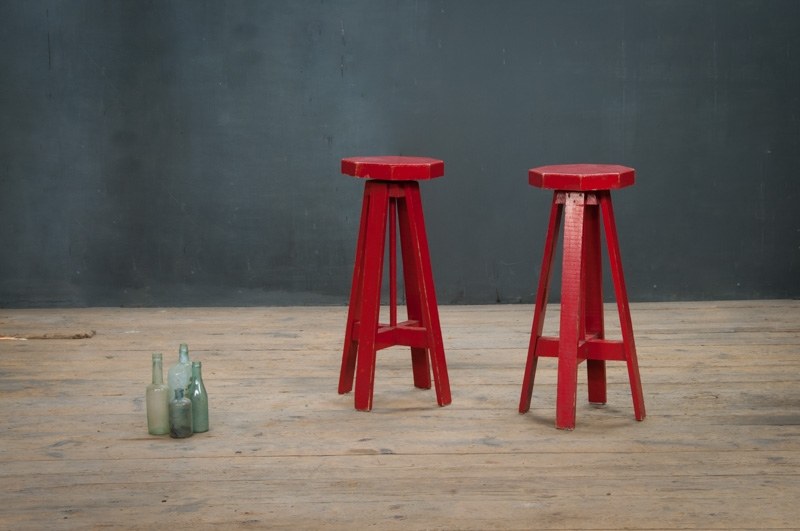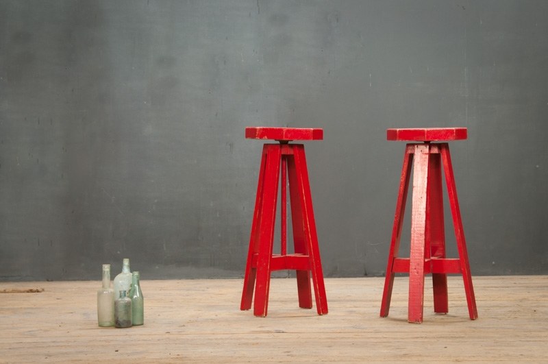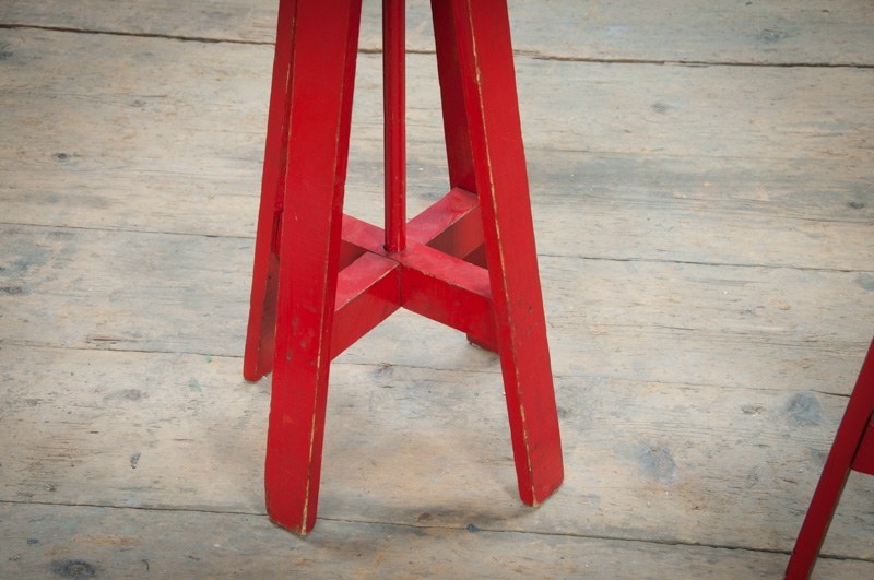 USA, 1950s, Vintage Ringling Circus Minimalist Stools. Hardwood Construction with Enameled Red Finish. Unique Minimal Design. Solid and Stable. Pair.