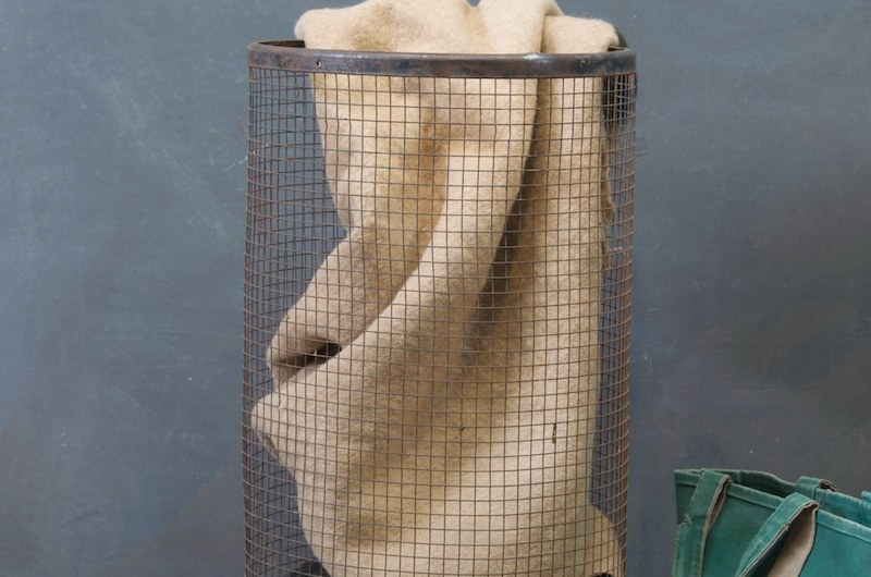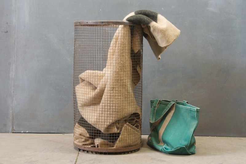 France, 1940s, Tall Industrial Wire Mesh Basket. Time worn patina. Very versatile.