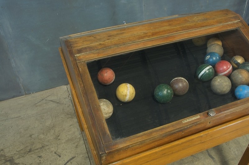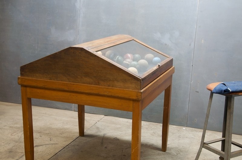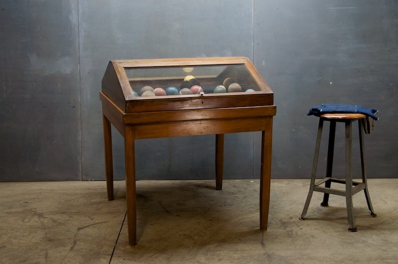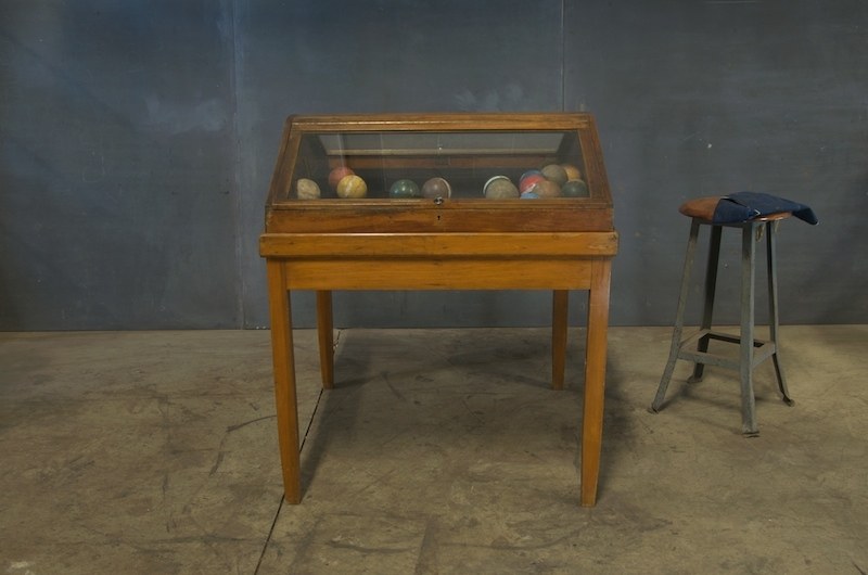 Germany, 1940s, Vintage Gate Fold Jewelry Display Case. Nicely worn patina on the hard rock maple. Heavy double glass doors. Wonderful display for jewelry or collections.