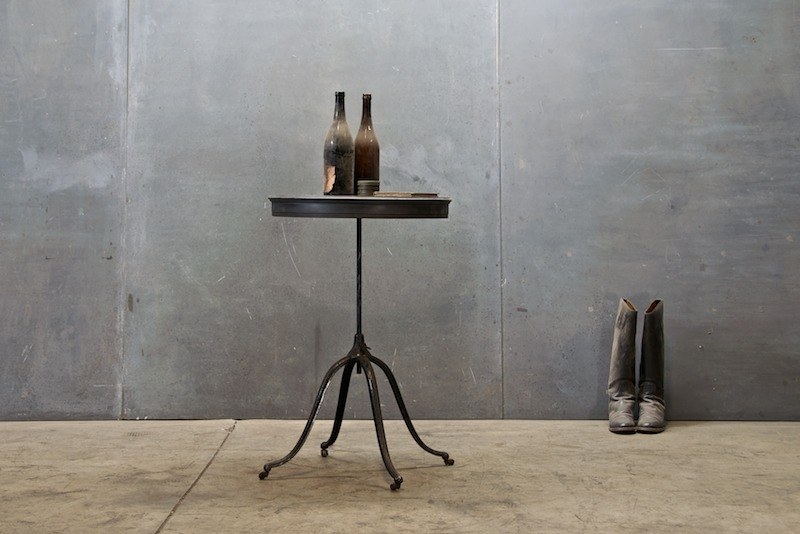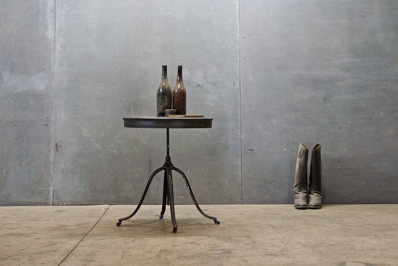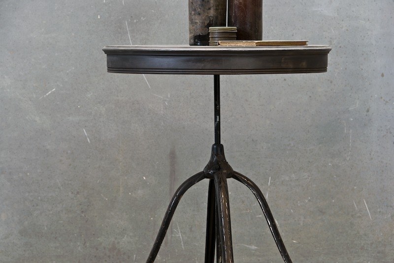 USA, c.1880s. Lyon Victorian Hardwood and Cast Iron Adjustable Height Parlour Table. Floral Etchings to Base. Cast Iron Original Caster Wheels. Patina and Function.